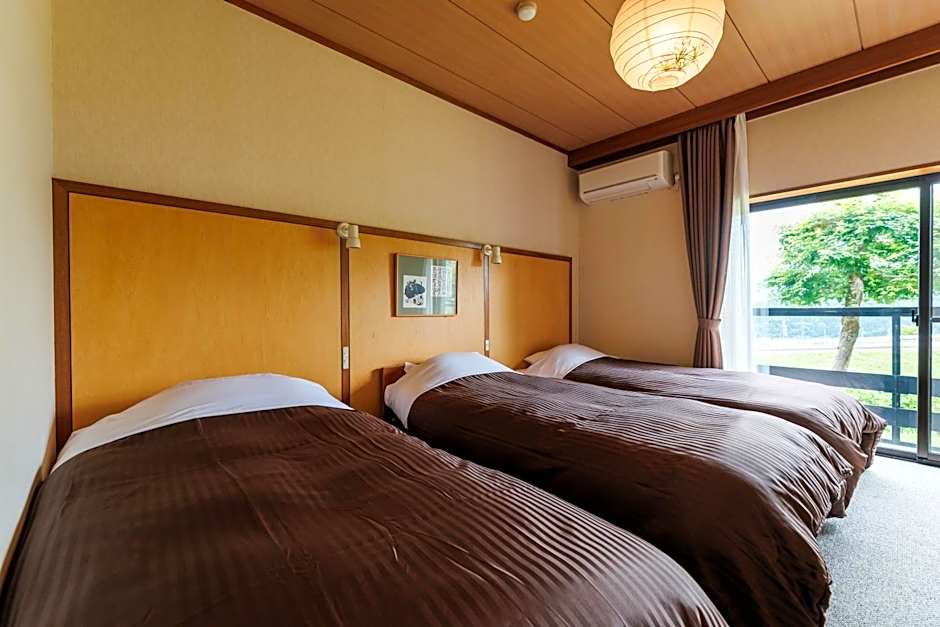 Featuring a garden view, this room is fitted with tatami (woven-straw) flooring and traditional futon bedding. This twin room has a seating area, electric kettle and air conditioning.